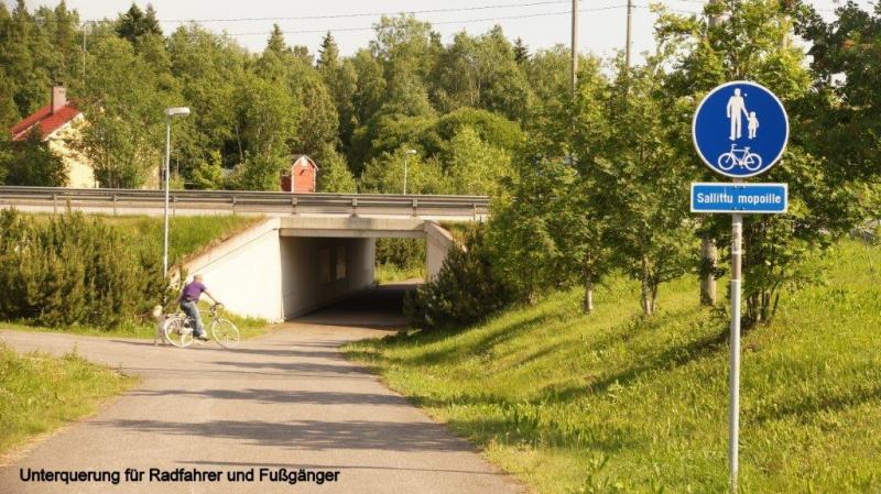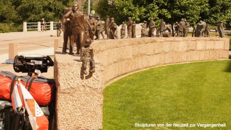 Aus dem Nachbarzelt erschallen – wie gewohnt − noch tiefe Schlafanzeichen, als ich mich nach kurzer Nacht aufmache in Richtung Dusche. Der Campingplatz hier auf einer Halbinsel am Rande von Oulu ist relativ groß und wir haben wieder Chipkarten zum Öffnen der Sanitärräume und der Küche. Dies ist immer dann lästig, wenn man was zu tragen hat und die Karte erst einmal aus der Hosentasche friemeln und dann in den Slot stecken muss. Auf dem Campingplatz sind auch noch eine Reihe anderer Zelte. Da wir gestern Nachmittag (Sonntag) um 18:00 Uhr uns ja kurz vor Ladenschluss noch mit neuem Proviant haben eindecken können, gibt es eine reichliche Auswahl zum Frühstück, dazu gehört auch für jeden ein gekochtes Ei. Beim Frühstück diskutieren wir die weitere Ausrichtung unserer Abenteuerreise. Wir werden leider wegen einer persönlichen Disposition den von Karl-Josef angeregten Plan nicht weiter verfolgen, nach Rovaniemi (die Stadt in dem der Weihnachtsmann mit seinem Schlitten und den vielen Rentieren zu Hause ist) fahren und über den Nordpolarkreis nach Pello, um dann am Grenzfluss Klukkolaukoski (finnisch-schwedische Grenze) nach Tornio (finnisch) bzw. Happaranda (schwedisch) zurück zu fahren (gesamt ca. 300 km = 3 Tage). Die Option zum Nordkap zu fahren war ohnehin schon aufgegeben worden, da wir hierfür weitere 1,5 bis 2 Wochen benötigt hätten, aber auch wegen der fehlenden Transportmöglichkeit unserer Fahrräder von Narvik nach Luleå mit dem Zug. Bevor es heute Morgen aber weiter geht, wird nochmal Heiners Vorderrad inspiziert. Aber der Mantel lässt sich nicht „hubbelfrei“ auf der Felge zentrieren. Aber wir haben ja einen Ersatzmantel mit und der wird nun aufgezogen. Auch der Faltreifen (Kevlarring) lässt sich nicht einwandfrei zentrisch aufziehen. Aber er sitzt besser als der Drahtreifen (Drahtring) und Heiner entscheidet, so nun einmal zu fahren. Ein Anruf bei der Fahrradseelsorge in Brühl (Ferdi) hat zum Ergebnis, dass vermutlich die Felge zu schmal für die Reifenbreite ist. Also müsste bei nächster Gelegenheit ein neuer schmalerer Mantel gekauft werden. Wir packen unsere Räder und bringen unsere Chipkarten und den Zeltanhänger zurück zur Rezeption. Hier treffen wir Edi und Werni aus der Schweiz noch und wünschen einander gutes Weiterkommen und Wetter. Ein kurzer Schlenker am Strand vorbei, der hier fast kurortmäßig in Anlehnung an die deutschen und polnischen Kurorte ausgebaut wird. Hier sehen wir Leute im Sand in der Sonne liegen und zum ersten Mal auf unserer Reise etliche auch im Meer plantschen. Danach geht es bei sonnigem Wetter wieder zurück über 2 kleine Inseln in die Stadt Oulu. Wir schlendern über den Wochenmarkt und nehmen die Atmosphäre der größten Stadt Mittel- und Nordfinnlands auf, über die Heiner am Vortag bereits berichtet hat. Beim Verlassen der Stadt kommen wir an einem schön gelegenen See mit Wasserspielen vorbei, bevor es dann von hier aus ca. 40 km über eine Landstraße an dem Städtchen Haukipudas vorbei geht. Hier holen wir uns in einem Geschäft Fertigsalate, zum Nachtisch Mirabellen aus Spanien und für Heiner natürlich mit Schokocreme gefüllte Teilchen. Wir sind die Fastfood-Gerichte der letzten Mittagspausen einfach leid. Das letzte Stück fahren wir nur noch entlang der Hauptküstenstraße 4 oder auch E75 bezeichnet und dies immerzu auf einem ca. 30-50 cm schmalen Randstreifen. Dieser wird begrenzt durch Rattermarken zur Straße hin und zur anderen Seite durch den unbefestigten Seitenstreifen. Schwierig wird es immer die Balance zu halten, bzw. in der Spur zu bleiben, wenn große LKWs oder Wohnwagengespanne an uns vorbei fahren und eine Druckwelle erzeugen. Insbesondere dann, wenn diese dann noch entsprechenden Gegenverkehr haben und nicht weiter ausweichen können. Aber Folgendes soll hier auch erwähnt werden. Immer wieder finden wir bei Ortsdurchfahrten begleitende gut ausgebaute Fahrradwege. Das Besondere in Finnland ist jedoch, dass an Kreuzungsbereichen Fahrradwege jeweils als Unterführungen unter den Hauptstraßen geleitet werden, ein hohes Maß an Verkehrssicherheit. Unterwegs treffen wir einen Radler, der nach Tornio fahren möchte (noch ca. 65 km), nur um dort in die Sauna zu gehen, wie er im nebeneinander Herrollen erzählt. Dann gibt er wieder Gas und fast eine Stunde sehen wir nichts mehr von ihm. Dann taucht er auf einmal wieder von hinten auf und gibt zu verstehen, dass er Knieprobleme hat. Wieder fährt er ein Stück voraus, aber dann müssen wir ihn überholen. Bleibt ein Geheimnis, ob er es noch bis zur Sauna nach Tornio geschafft hat. Ja was sollen wir denn sagen, mit unseren Zipperleins, wenn wir wie an den letzten Tagen immer so um die 100 km bei Sonnenschein oder Regen absolvieren. Am Abend kommen wir auf einen Zeltplatz, der unser bisher mückenreichstes Domizil sein wird. Die Hinweisschilder auf den Zufahrtstraßen zeigen eine 3-Sterne-Kategorie an. Diese muss sich der Campingplatzbesitzer irgendwoher besorgt haben, oder sich selbst zugesprochen, denn der Platz ist äußerst primitiv. Es gibt zwar eine Küche, aber die Kochplatten reagieren eher willkürlich und Trinkwasser gibt es nur an einem Hahn draußen auf dem Hof. Auch der Rest ist bescheiden. Wir lagern aber schön an einem Fluss gelegen und bewundern Angler mit einer Engelsgeduld beim Fliegenfischen. In einiger Entfernung auf der anderen Seite plantschen einige Mädels im Fluss. Deutlich mutiger als wir Männer. Aber in die braunen Fluten zu steigen, Mücken umschwärmt, daran Wohlgefallen zu empfinden, können wir uns nicht so recht vorstellen. Einen der Angler, der nun schon eine ganze Zeit vergeblich mit voller Montur aus dem Wasser steigt, frage ich, ob er denn erfolgreich gewesen wäre. Heute nicht, aber er zeigt mir stolz auf seiner kleinen Digitalkamera wie er einen ca. 60 cm langen Lachs hält, den er wohl vor ein paar Tagen gefangen hat. Früh kriechen wir heute in unsere Zelte und träumen von sonnigen Tagen an schönen 