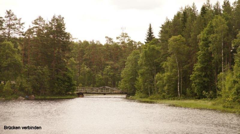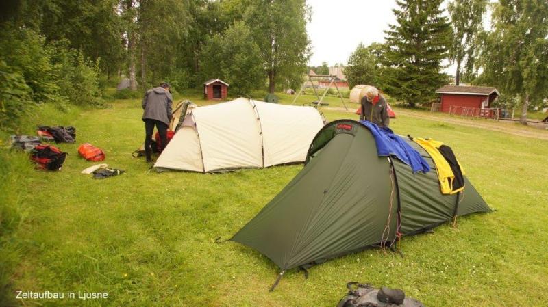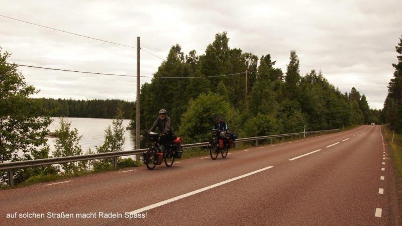 Wer früh auf einem überfüllten Campingplatz aufsteht, hat den Waschraum für sich alleine. Von dort zum Frühstück ins Haus gegenüber. Außerhalb der Küche sind überdachte Sitzgruppen installiert. Die Sonne scheint immer wieder zwischen den Wolken durch. Die Zelte konnten trotz Regen gestern Abend am Morgen trocken abgebaut werden. Wir haben noch einige Zeit gebraucht, um die kurze, kostenlose WiFi-Zeit zum Übersenden von Blogs zu nutzen. Uns bläst es kalt und heftig entgegen, als wir uns auf die Drahtesel schwingen. Wir fahren eine kurze Strecke, die wir gestern in umgekehrter Richtung zum Einkaufen zurückgelegt hatten. Da wir nach Verlassen des Campingplatzes erst eine Flussmündung in nordwestlicher Richtung bis zu einer Brücke umkurven mussten, hatten wir die Probleme mit ständigem Gegenwind. Nun aber geht es nach Süden. Wir durchfahren Industriegebiete, die hier im südlichen Teil Schwedens küstennah immer häufiger anzutreffen sind. Die Tour geht dann über Landstraßen 2-4 Kilometer von Norden aus gesehen. Neben der „E4“ folgen wir der Landstraße 583 in Richtung Iggesund und Njutangersvägen um den großen Bogen, den die Cykelroute hier in den Westen nimmt, zu vermeiden. Bei Berghem überqueren wir die E4 um dann der Cykelroute, westlich der Schnellstraße, zu folgen. Wir haben mehrfach über die „E4“ geschrieben. Sie ist eine wichtige Süd-Nord-Verbindung für den Kraftverkehr in Schweden und für Radfahrer nach den letzten Ausbauten ungeeignet. Sie trennt aber auch die Landschaft. Wenn man östlich der „E4“ fährt kommt man in die Küstenregion, westlich in die Berge. Das gilt aber nur bis zur Stadt Gävle, die wir erst morgen erreichen, da dort die „E4“ ins Land Richtung Stockholm strebt. Bisher bot das Landesinnere (zwischen 20 und 50 km von der Küste) immer Überraschungen. Das eine ist die Landschaft. Ich habe den Eindruck, eine Natur vorzufinden, die der Mensch kaum gestaltet hat. Sie bietet Abwechslung zwischen Mooren, kleinen und großen Seen, Wälder, die mit wechselhaftem Baumbestand wie Kiefern, Tannen, Birken und Eschen, die auf Gegebenheiten der Biotope natürlich eingestellt sind. Als zweites, die Wegstrecke zwischen Asphaltbelag, Schotter sowie Höhen bis zu 300 m und Abfahrten (in Berg- und Talbahn) auf bis zu 60 m. Immer kommt bei der Streckenwahl die Frage von Jürgen „Waschbrett oder Asphalt?“. Keine uns zur Verfügung stehende Karte oder mein GPS kann vorab diese Frage beantworten. Und so ist es immer wieder spannend. Sehen wir Wild – oder gar einen Elch? Unzählige breite Flüsse oder sprudelnde Bäche kreuzen den Weg und speisen unzählige Seen. Desto tiefer wir nach Süden kommen, je merklicher wird die Landschaft „weicher“. Auch das ist die „Tour Überraschung“. Ich beobachte das an jedem neuen Tag auf dem Sattel. Im Norden überwiegt die Birke als Laubbaum. Jetzt sehen wir schon Buchen und Linden. Auch die Jahreszeit verändert die Natur. In Massen – wirklich in Massen – sehen wir am Rand (überall auf dem Weg um die Ostsee) Felder mit Maiglöckchen. Die Blätter werden gelblich. Bei Pausen am Waldrand pflückte ich Waldbeeren. Als wir im Mai in Polen den Boden bedeckt mit Waldbeeren sahen, waren sie noch im Blütenansatz. Nicht nur der Weg ist immer eine neue Herausforderung, sondern auch das Ziel – unser Übernachtungsplatz – ist eine Überraschung. Wie ist die Küche des Platzes? Können wir Abendessen auf einem Herd zubereiten oder müssen wir den Kocher in Gang setzen? Diesmal hatten wir eine sehr positiv Überraschung. Jürgen kam mit einer jungen Frau aus der Anmeldung die perfekt Deutsch sprach und uns sehr freundlich auf dem Platz einwies. Die Platzbesitzer sind Heike und Martin, die aus Deutschland nach Schweden übergesiedelt sind und hier ihr neues Glück suchen. Es gab schwedische Vorfahren. Der Campingplatz liegt in der Stadt Ljusne am Fluss Ljusnan der einen Kilometer weiter in die Ostsee mündet. 200 m vor dem Campingplatz wird er aufgestaut. Beschreibungen erspare ich mir hier, da die Fotos auch vom nächsten Tag vieles über den Ort berichten. Nun zum Abendessen. Um die Speisenabwechslung auszuweiten, nimmt Jürgen heute mal Eierravioli aus der Dose verfeinert mit Champignons, dazu gekochte Würstchen einmal in feiner und in grober Machart auf den Speiseplan. Aber auch wenn Heiner nicht auf seine Tomaten verzichten konnte, gab es noch eine Gemüsepfanne (gefrorener Beutel) mit den leckersten Vitaminen, die wir bisher aufgenommen haben. Abgerundet durch ein kühles Bier. Gekühltes Bier gibt es in Schweden nicht im Supermarkt zu kaufen! Hierzu holen wir uns Latbier (2,8% Alkoholgehalt, kostet ca. die Hälfte von Normalbier!) und kühlen z.B. mit dem gefrorenen Gemüse und an diesem Abend, mit einer kleinen Schale Schokoladeneis. Der Tag hat müde gemacht und es ist schon spät geworden, als ich dann mit Blick auf den Fluss in das Zelt kroch.