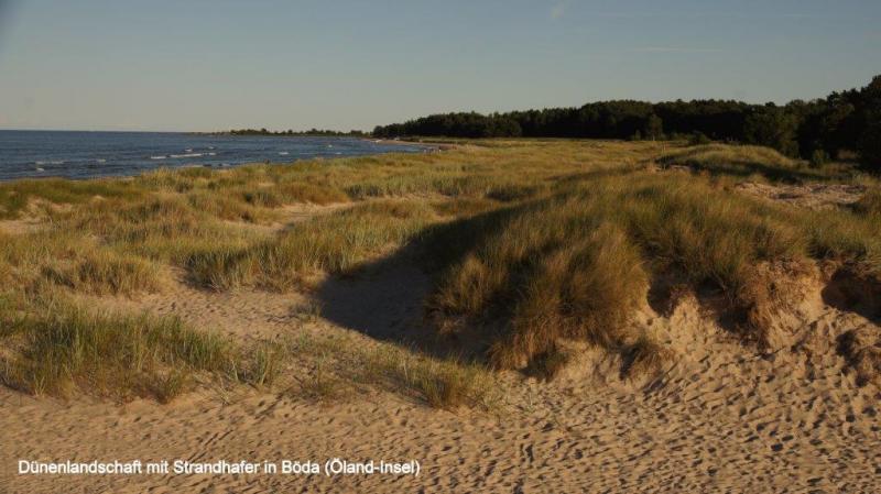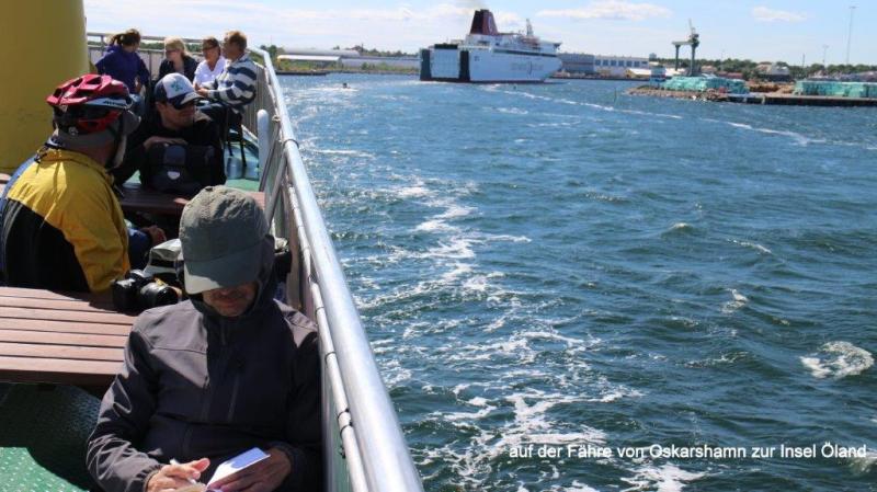 Der Plan für heute war einfach und klar. Keine Karte war nötig, keine Überlegung wo gehts lang. Vom Zeltplatz im Ort Figeholm zur Stadt Oskakarshamn sind es 24 km bis zum Fährhafen. Dort wird um 14:00 Uhr die Fähre zur Ölandinsel abfahren. Die Sonne verwöhnte uns auf unserem Zeltplatz. Nach einem wie immer ausgiebigen Frühstück, natürlich im Freien, ist der Ablauf wie an jedem Tag. Packen der Radtaschen und Zeltabbau wird fast schon „im Schlaf“ erledigt. Das seit Tagen trockene Wetter beschleunigt die Abläufe, so dass wir ohne Hetze (müssen ja erst mittags die Fähre nehmen) um 10:00 Uhr starten. Der Cykelspåret führt uns zunächst nach Süden um dann nach 15 km zur E22 gegen Westen neben der Schnellstraße auf einem Radweg nach Süden zu kommen. Entgegen der Radroute nutzen wir 1 km Strecke auf der E22 um zu einer westlich verlaufenden Nebenstraße direkt zum Ziel zu kommen. Gegen 11:30 Uhr waren wir im Hafen. Vom Abfahrpunkt der Fähre keine Spur. Vorher wiesen große Straßenschilder auf die zwei Abfahrplätze der Fähren zur Insel Gotland und Öland hin. Erst nach dem Jürgen mehrere Passanten befragt hatte, finden wir einen unscheinbaren Hinweis mit dem Abfahrtspunkt. Personenwagen (es wurden nur reservierte Autos mitgenommen, da seit Wochen ausgebucht) und viele Mitreisende zu Fuß wie auf dem Fahrrad fanden sich ein, um dann pünktlich die Fähre zu besteigen. Ein scharfer Nordwind hatte uns schon bei der Radtour den Weg nach Süden beschleunigt doch nun auf dem Schiff konnte es unangenehm werden. Das war es dann auch. Das kleine Fährschiff Baujahr 1964 pflügte sich tapfer durch die recht hohen Wellen. Das Land entschwand nur langsam und die sehr große Fähre nach Gotland überholte uns in der Ferne anscheinend mühelos. Sie hatte in Oskakarshamn angelegt, als wir aus dem Hafen fuhren. Wir hatten im Oberdeck dick vermummt Platz genommen und ich beobachte das Auf und Ab der Wellen sowie das Treiben an Bord. Seekrank bin ich nicht geworden. Die Überfahrt dauerte 2 ½ Stunden. Im kleinen Hafen von Böda war alles eng. Im Segelsporthafen zwängten sich die Boote dicht nebeneinander. Der PKW-Parkplatz war überfüllt. Die auf die Fähre wartenden Autos kamen kaum an den herausfahrenden vorbei. Eine gute besuchte Ferieninsel erwartete uns. Wir „schwammen“ mit dem dichten Verkehr auf die Westseite Ölands, die hier, im Norden der fast 100 km langen Insel, die meisten Campingplätze auswies. Direkt der erste Campingplatz bei Mellböda gefiel uns, da er nicht zu groß war. In den freien Monaten sind die Plätze voll belegt und auf den „großen“ ist daher nur „Ferienrummel“ mit vielen Wohnwagen und teilweise sehr großen Zelten zu erwarten. Unser Zeltplatz ist umringt von Wohnwagen und Langzeitferiengästen. Wir stellen uns dazwischen und erobern die Küche. Ich nutze die hier überall verfügbare Mikrowelle um Spinat aufzutauen. Heiner brät Gehacktes und dazu gibt es Reis. Nach dem Essen möchte ich den Strand kennenlernen, auf den die Schweden alle so wild sind. Ein breiter feiner Sandstand mit Dünen erwartet mich. Sandstrände sind an der schwedischen und finnischen Ostsee sehr selten und daher wohl sehr beliebt. Wie oft beschrieben, führt der felsige Grund bis ins Wasser. Statt wie auf der finnischen Seite ein gewohnter Sonnenuntergang über dem Meer, strahlt mir ein hell leuchtender Vollmond über der Ostsee entgegen. Mein langer Spaziergang hat mich müde gemacht und ich bin gespannt auf die morgige Radtour über die Insel.