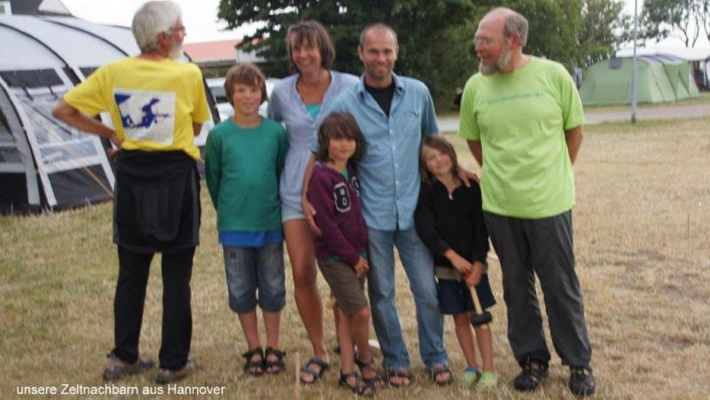 Nun einiges zur Stadt Malmö: Der Name der Stadt stammt wahrscheinlich vom altdänischen Malmhaugar, was im Deutschen Steinhaufen bedeutet. Die Landungsstelle diente zunächst vor allem dem dänischen König, um in das bedeutendere Lund zu gelangen. Lund liegt 17 km nordöstlich von Malmö und nur 60 km von der dänischen Hauptstadt Kopenhagen entfernt. Malmö hob sich bald durch Heringsfischerei und Handel hervor und profitierte dabei ebenso von seiner strategischen Lage. Da der dänische König die Kontrolle über die Häfen im Norden und Süden hatte, konnte er den südlichen Öresund abriegeln lassen. Die ältesten Stadtprivilegien stammen vom 20. Dezember 1353 und wurden später mehrmals bestätigt und erweitert. Malmö übernahm nun mehr und mehr die Rolle Lunds als wichtigste Stadt in Schonen. Die ältesten, heute noch vorhandenen Gebäude der Stadt stammen aus dieser Zeit, so z. B. auch die Festung Malmöhus, die im 15. Jahrhundert von Erich von Pommern gegründet wurde. Malmö gilt als Geburtsort der dänischen Reformation, so wurde die erste lutherische Predigt Dänemarks in Malmö gehalten und die erste Bibel in dänischer Sprache gedruckt. Im 16. und 17. Jahrhundert wurde Malmö abwechselnd von Schweden und Dänemark belagert. Am 23. April 1512 wurde hier der Friede von Malmö zwischen Dänemark und der Hanse und ein Waffenstillstand Dänemarks mit Gustav Wasa von Schweden geschlossen. Zur Hansezeit stand die Stadt unter deutschem Einfluss. Durch den Frieden von Roskilke unter Karl X. Gustav wurde Malmö 1658 schwedisch. 1775 erhielt die Stadt einen künstlich geschaffenen Hafen. Am 18. September 1872 starb König Karl XV. in Malmö. Mit Fertigstellung der Öresundbrücke im Jahr 2000 ergaben sich neue Impulse für die wirtschaftliche Lage der Stadt als Verkehrsknotenpunkt zwischen Skandinavien und dem übrigen Europa. Hinter Lomma entdecken wir auf dem Meer einen riesigen Tanker und können dank Zoom den Namen „Wallenius Wilhelmser“, eine weltweite Firma mit mehr als 60 PCTC und RoRo Schiffen - erkennen. Auf dem Campingplatz bei Landskrona werden wir sehr freundlich von unserer Zeltnachbarin mit drei gekühlten Bierdosen empfangen. Wir freuen uns sehr. Das haben wir ja noch nie erlebt! Wir machen im Laufe des Abends noch ein Erinnerungsfoto mit ihrem Ehemann Holger und den Kindern Leo, Ellen und Hanne. Sie kommen aus Hannover und müssen morgen früh zurück, da Wasser in ihren Keller eingedrungen ist. Edith ist eigentlich eine waschechte Kölnerin und Holger, dem Geophysiker, bei der Ölsuche bis nach Hannover gefolgt. Wie man am Computer Öl finden kann, verstehe ich zwar nicht, nehme mir aber fest vor, bei der nächsten Berlinfahrt mit dem Zug mal nicht Hannover zu verpennen, sondern auf die Bohrtürme zu achten. Ich bin heute Abend für das Abendessen zuständig. Es gibt Reis mit Hackfleisch, Bolognese mit Tomaten und reichlich Champignons.