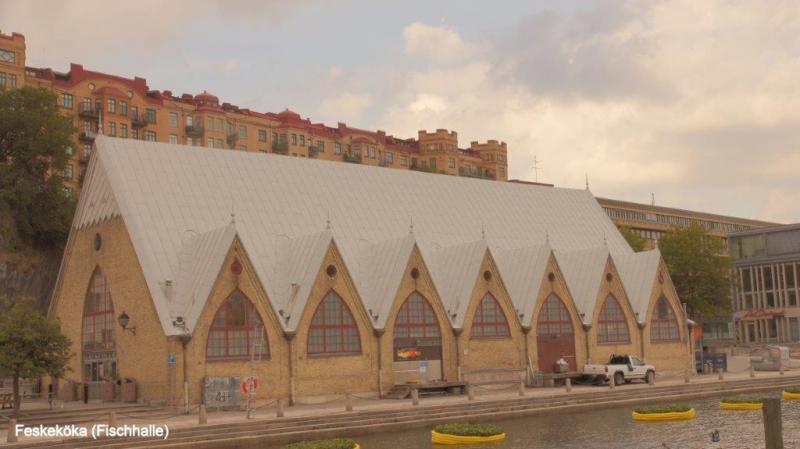 Unsere Unterkunft ist das Linnè Vandrarheim. Wie in deutschen Jugendherbergen können wir in der Selbstversorgerküche frühstücken. Danach hatte jeder seine eigenen Ziele. Jürgen möchte bis zum frühen Nachmittag an seinem Blog arbeiten, Heiner wird sich die Stadt ansehen und Museen und Kirchen besuchen und ich möchte aufgrund der Erfahrungen des gestrigen Abends das Leben in der Stadt erleben. Göteborg liegt direkt an der Küste, die von malerischen Schäreninseln gesäumt ist. Um etwas über die Entstehung der Stadt zu erfahren habe ich in Wikipedia herausgefunden, dass es eine Ansiedlung schon um das Jahr 1100 flussaufwärts des Flusses „Göta älvs“ gegeben hat. Nach der Lage Göteborgs für Schweden ist leicht erkennbar, dass dieser Ort der einzige Zugang zum Atlantik darstellte. Im Mittelalter hatte die Stadt wegen der Meerenge zwischen Ost- und Nordsee eine bedeutende Kontrolle des Ostseezu- und ausgangs. Daher wurde im 15. Jahrhundert eine Festung errichtet um die sich ein Dorf, das Älvsborgs genannt wurde, entwickelte. Soweit die Geschichte und nun zurück zum Tagesgeschehen. Nachdem Heiner und ich uns an der Bank mit Geld versorgt hatten, erklärte ich anhand des Stadtplanes den Weg zur „Altstadt“ und zu den Museen. Mein Weg verlief direkt in die Haupteinkaufszonen. Um in die Innen- oder Altstadt zu kommen, müssen zwei Kanäle überquert werden. Dann öffnet sich insbesondere in der Kungsgatan das Geschäftsleben mit Einkaufsläden, Kaffees und Restaurants. Schon um 11:00 Uhr waren bei schönstem Sonnenschein alle bewirtschaften Außenanlagen voll besetzt. Der offizielle Stadtführer (natürlich in Deutsch) spricht nicht von der Altstadt, sondern von der Innenstadt. Die von mir in den besichtigten Gebäuden sind meist noch „jung“ und stammen frühestens aus dem 19. Jahrhundert. Meist findet man wie in allen europäischen Großstädten sehr moderne „Einkaufstempel“, die erst in den letzten Jahren entstanden sind. Der Göteborger Dom aus dem Jahr 1815 enttäuscht etwas wegen seiner puritanischen Schlichtheit. Schon gestern Abend haben wir die Kristinenkirche , die als deutsche Kirche bekannt ist, entdeckt. Hier wird deutschsprachiger Gottesdienst für Besucher und die 1000 deutschsprechenden Göteborger Christen abgehalten. Sie wurde bereits 1648 eingeweiht und liegt unweit des Hafens. Auf der Außenseite (von der Innenstadt gesehen) des Rosenkanals befindet sich der Kungsparken mit vielen sehr alten Bäumen und einer wunderbar gepflegten Anlage. Hier stieß ich auf eine Gedenkstätte zur Judenverfolgung im 3. Reich. Eine Tafel gibt darüber Auskunft, dass damit der in den Gaskammern umgekommenen Menschen gedacht wird. Da es wohl in Schweden selber keine Judenverfolgung gegeben hat, finde ich diese Gedenkstätte außerhalb Deutschlands sehr bemerkenswert. Die künstlerische Ausgestaltung mit in Bronze gegossenen Schuhen auf einer Eisenplatte und einem gebogenen Schienenstrang neben einer Flammenstele fand ich sehr beeindruckend. Der Park selber geht später in den botanischen Garten über, der mit 16.000 Gewächsarten einer der größten botanischen Gärten in Europa sein soll. Leider konnte ich aus Zeitgründen diesen nicht besuchen. Gegen 15:00 Uhr war ich zurück in der Jugendherberge und schrieb einen weiteren Beitrag zum Blog. Heiner löste mich beim Blogschreiben für seinen Tag ab und berichtete mir über seine Besuche in der Stadt. Am Abend ging ein ordentlicher Regenguss nieder. Wir beschlossen, zum Ausklang des Schwedenbesuches essen zu gehen und steuerten dazu ein indisches Restaurant an. Die drei unterschiedlichen Menüs waren sehr gut und scharf. In der Selbstversorgerküche tranken wir das kühlgestellte Bier und gingen danach gesättigt und müde vom vielen Wandern durch die Stadt in unsere Betten.