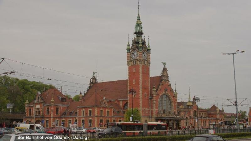 Die Ereignisse überschlagen sich heute Morgen. Um den terminlichen Druck aus der vorgegebenen 30-Tage-Frist von Grenze Kaliningrad bis Grenze Finnland zu nehmen, haben wir beschlossen, den russischen Teil mit St. Petersburg auszulassen und die baltischen Länder intensiver zu erfahren / -leben. Daher mussten wir nun auch nicht am 10.05.2013 (Beginn unseres Russlandvisums) unbedingt weiterfahren. Wir wollten nun heute in Richtung Kaliningrad aufbrechen, nachdem wir uns die letzten beiden Tage von der anstrengenden Fahrt bis nach Danzig erholt hatten. Unser lieber Karl-Josef hatte jedoch plötzlich in der Nacht so ernsthafte gesundheitliche Probleme, dass eine umgehende Rückkehr nach Deutschland erforderlich wurde. Noch während des Frühstücks wurde im Internet recherchiert, welche Zugverbindungen von Danzig nach Köln gegeben sind. Schwierigkeiten machte die Buchung zur Mitnahme des Fahrrades, da immer wieder einzelne Züge hierzu bereits ausgebucht waren (es fahren anscheinend doch viele Radler Einzelstrecken mit dem Zug!). Da Heiner und ich unsere Reise zunächst alleine weiterführen möchten, wurde das Gepäck (insbesondere Kochutensilien) dahingehend sondiert, was für nur 2 Personen erforderlich ist. Unsere Bohnenkaffeeaufschüttvorrichtung fiel zum Opfer, da wir z.B. das kleine Notebook (sonst können wir unsere Website ja nicht weiterführen) von Karl-Josef und sein großes Zelt nun mitnehmen müssen. Mein kleines Zelt wird zusätzlich mitgenommen. Die bereits am Vortag eingekauften Lebensmittel (heute ist Sonntag) werden aufgeteilt. Aber über allem schwebt natürlich die Sorge um Karl-Josef und natürlich die Frage, ob es auf der weiteren Reise auch zu zweit klappt. Wir trösten uns damit, dass Karl-Josef vielleicht nach möglichst kurzer Zeit wieder zu uns stoßen kann. Alle baltischen Hauptstädte können per Flugzeug erreicht werden und auch Helsinki wäre ja dann noch eine Möglichkeit. Karl-Josef war echt betroffen, dass er gerade jetzt, wo es ins Baltikum geht, auf das er sich besonders gefreut und vorbereitet hatte, aussetzen muss. Er wird uns mit seiner Persönlichkeit und seinen Talenten fehlen und es wäre natürlich für uns alle toll, wenn es wieder gemeinsam um die Ostsee ginge! Mit den frisch geschmierten (Ketten und Schaltung) und bepackten Rädern geht es dann zum wunderschönen Bahnhof von Danzig.