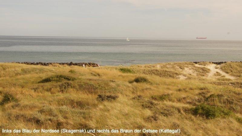 News zum 07.08.2013: Morgens 6:30 ist Wecken. Wir wollen ja um 10:00 Uhr die Fähre nach Frederikshavn erreichen. Um 9 Uhr fahren wir los. Die Jugendherberge hatte eine gute sanitäre Ausstattung und auch die Küche mit Aufenthaltsraum und Kühlschrank war sehr ansprechend. Allerdings lag unser Zimmer an einer Bushaltestelle und viel befahrenen Straße. Der Fußgängerweg lag unmittelbar am Fenster, das lediglich knapp einen Meter über den Weg ragte. Wir sind pünktlich mit Hilfe eines Aufzuges am Kartenschalter für eine Überfahrt, werden aber von einer Mitarbeiterin darauf hingewiesen, dass wir mit unseren Rädern zum Einchecken ca. einen Kilometer weiterfahren müssten. Dort angekommen können wir auch an den Autos vorbei direkt in den Bauch der Fähre fahren. Wir müssen uns zunächst mit einem Platz in der Mitte des Schiffes begnügen. Aber nach einer Weile gelingt es mir einen Fensterplatz zu ergattern und die Überfahrt mit Kaffee, Brot, Plätzchen und meinem iPod zu genießen. Nach Ankunft um 13:15 Uhr in Frederikshavn machen wir uns zunächst auf die Suche nach einem dänischen Bankautomaten. Wir erfahren, dass 100 dänische Kronen 1,45 Euro entsprechen. Nach einem Picknick auf einem Kirchhof geht es weiter an die nördlichste Spitze Dänemarks, dem 40 km entfernten Skagen, dass wir nach drei Stunden um 17 Uhr auf einem vorzüglichen Radweg vorbei an Dünen und Heidelandschaften erreichen. Dann müssen wir noch ca. 3 km bis zur Küste fahren, wo uns schon ein großer Parkplatz erwartet. Auf der höchsten Erhebung liegt ein riesiger Kompass aus Bronze, der die Himmelsrichtungen anzeigt. Nicht weit entfernt steht ein großer Leuchturm. Wir sehen aufs Meer hinaus und entdecken eine Vielzahl von Schiffsfrachter, die um dieses „Cap Horn“ herum müssen. Hier scheidet sich die Nordsee (Skagerrak) von der Ostsee (Kattegat). Dies kann man deutlich an einer blau –braun Verschiebung der Farben erkennen. Wir beschließen noch Richtung Strand zu gehen, wo viele Urlauber im warmen Wasser schwimmen. Na, denke ich, ob die beiden vielleicht zumindest mit den Füßen ins Wasser wollen und gehe mit den Füssen im Wasser mutig voran. Wir müssen dann leider den Strand verlassen, um noch rechtzeitig für das Abendessen einkaufen zu können. Wir kommen in der Nähe der Küste auf einen Campingplatz, der zwar nichts zu wünschen übrig lässt, aber auch seinen stolzen Preis hat. Da Jürgen heute frei zum Blogschreiben hat, fahren Karl-Josef und ich in den ca. 3 km entfernten Stadtkern einkaufen. Es gibt Nudeln mit Champions und Tunfisch in Tomatensauce, angereichert mit 6 Tomaten und drei gekühlten Dosen Carlsberg, wieder mit den uns zu Hause vertrauten Promille von 5,3 %. Dabei hatten wir uns die ganzen Wochen in Schweden wirklich an die 2,8 % gewöhnt. In der Nacht fängt es an zu regnen und ich schließe das Zelt vollständig.