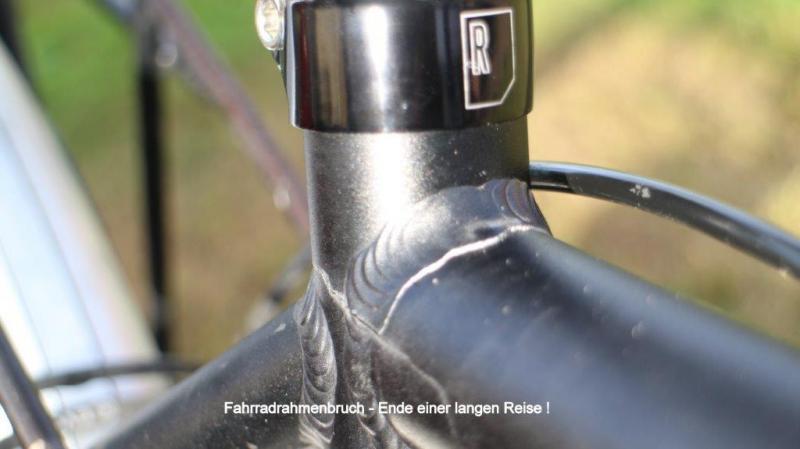 Am Morgen die gleiche Situation wie bisher an allen Tagen in Dänemark. Das Zelt ist am frühen Morgen von außen und innen nass. Aber die Sonne scheint, jedoch nicht auf unseren Zeltplatz. Die Schatten der hohen Bäume werden in den nächsten Stunden keinen Sonnenstrahl bescheren. Heiner schlägt vor, das leere Zelt in die Sonne zu tragen. Gesagt getan. So schaffen wir es, vor dem nächsten Regenguss das Zelt und alle Packtaschen trocken auf die Fahrräder zu bekommen. Nach 2,5 km Fahrt schützen wir uns unter Bäumen vor einem Platzregen. Bei der Streckenplanung am Vortag hatten wir die von Jürgen bevorzugte Straßenroute 170 oder den Radweg Nummer 55, den sogenannten „Grønlandsvej Tiufkær“ über Horsted und Klattrup, im BaseCamp Planungsprogramm in Erwägung gezogen. An der Straßenkreuzung vor uns verläuft der Radweg in einem dichten Wald und kann möglicherweise einen „überdachten“ Fahrweg bieten. Wir treten die Flucht unter die Bäume an, aber nach mehreren 100 m, aufgrund eines extremen Anstieges bei aufgeweichtem Waldweg und rutschenden Rädern müssen wir wieder aufgeben. Ist das überhaupt der richtige Weg? Gibt es Alternativen? Im kleinen Display des GPSmap 62s verschwindet beim Herauszoomen ein Teil der Ortschaften und die Gesamtübersicht geht verloren. Eine Routenübertragung vom Notebook aus der Software BaseCamp hatte ich nicht durchgeführt, da die Landstraße 170 als schnellere Verbindung geplant war. Eine detailreiche Karte zur Unterstützung und Groborientierung besitzen wir leider nicht und so treten wir wieder den Rückweg an. Die verlassene Straße im Startort Vejle ist schnell gefunden und die Überlandstraße 170 per Navi angesteuert. In zwei langgezogenen Kurven geht es in 4 km von 25 auf 100 Höhenmeter. Dann immer weiter auf der 170, die zum Glück teilweise von einem Radweg begleitet wird. Die Straße ist durch den Wind schnell abgetrocknet und so bleibt uns das Spritzwasser der vorbeirauschenden Fahrzeuge erspart. 5 km vor Kolding wird die Straße zur Autoschnellstraße und wir verlieren an einem sehr großen Kreisverkehr unseren Radweg, da keine Beschilderung zu finden ist. Mit der erwähnten kleinen Übersicht im Navi, finde ich nach einem Kilometer auf der für Fahrräder nicht erlaubten Autostraße eine Alternative, die uns jedoch in einem östlichen Bogen und damit in einem längeren Umweg in die Stadt Kolding führt. Dort nehmen wir am Rathausplatz unser vorbereitetes Mittagsbrot ein und steuern wieder die 170 an. Auf der Strecke weht weiterhin ein kräftiger Süd-Westwind und ab und zu sorgt ein leichter Regenschauer dafür, dass wir ordentlich strampeln müssen. Ab und zu schaut auch mal die Sonne nach uns und trocknet die Regenkleidung. Je näher wir unserem Etappenziel Haderslev kommen, desto mehr verdunkelte sich der Himmel. Das Danhostel mit Campingplatz am Haderslev Fjord war im Navi leicht auszumachen und schnell angesteuert. Der Regenguss holte uns am Zeltplatz doch ein und wir wollten die Schauer vor dem Zeltaufbau abwarten. Beim Abstieg vom Fahrrad traute ich meinen Augen nicht. Ein blinkender Riss im Metall entlang der Schweißnaht am oberen Querrohr meines Rades ist unverkennbar. Genauer betrachtet ist das nicht nur vorne der Fall, sondern ein weiterer Riss ist seitlich auch auszumachen. Die Sattelstütze wackelte und der Riss öffnete sich leicht. Es war nicht auszudenken, was passiert wäre, wenn bei einer Schussfahrt (so eben noch von der 170 runter in den Ort durchgeführt) der Rahmen unter dem Sattel und mir weggebrochen wäre. Ich rief Jürgen herbei und mir wurden die Knie weich. „Ich befürchte, damit ist die Tour für dich zu Ende“, sagte Jürgen trocken. Es ist nicht zu fassen, 60 km vor der deutschen Grenze und ca. 500 km vor Lübeck stehe ich vor dem Aus. Was tun? Reparieren lassen – Aluminium schweißen ist nur von Fachbetrieben möglich. Jürgen holte bei Ferdi in Königsdorf Rat ein. Er riet von einer Reparatur ab, da möglicherweise die 10-Jahre-Garantie beim Hersteller ROSE verloren geht. Der diskutierte Schadensersatz ist für mich jetzt und hier kein Thema, sondern die Sorge, wie komme ich mit Gepäck und Fahrrad nach Hause und wie kommen die Kameraden weiter. Was schwer wiegt – ein zweites Stück der „Ostseeumrundung“ fehlt mir! Nun, ich muss nach vorne sehen und rufe meine Freunde im 60 km entfernten Flensburg an, wo wir am nächsten Tag übernachten wollen. Sie versprechen, mich am nächsten Tag samt Fahrrad abzuholen. Da ein Teil meiner Familie in einer Woche in der Nähe von Lübeck Urlaub macht, ist der weitere Rücktransport nach Hause auch sicher gestellt. Heiner hat eine Tomatensuppe mit reichlich Nudeln und für jeden zwei kleine gekühlte Bierdosen in der kleinen Küche vorbereitet. Wir sitzen dann noch lange auf unseren Dreibeinhockern und sprechen das Erlebte und verschiedene Lösungsvarianten noch mal durch. Ich schreibe noch etwas am Blog und schlüpfte kurz vor Mitternacht in den Schlafsack. Die Müdigkeit ist so groß, dass ich trotz der Ereignisse schnell tief einschlafe.