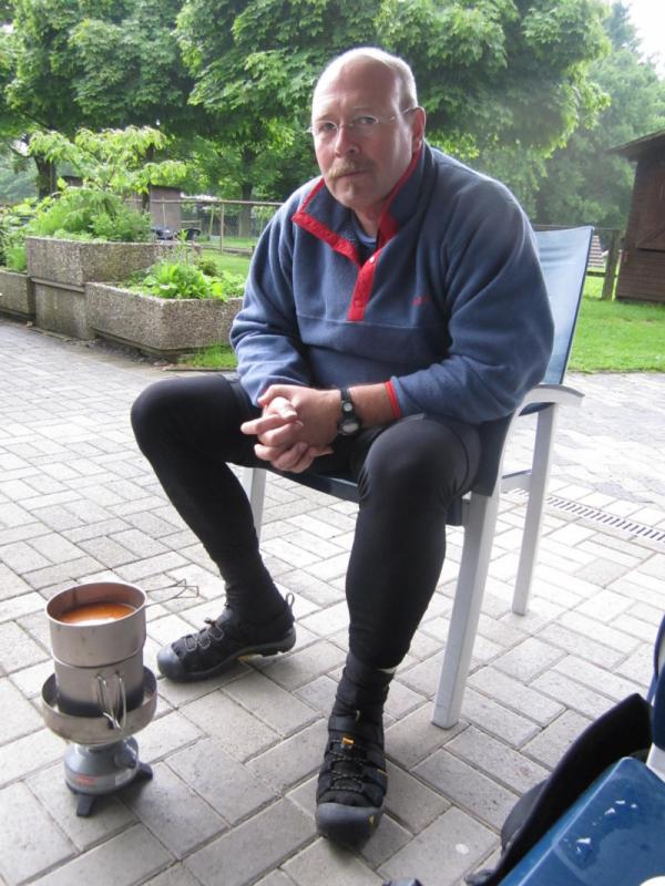 Jürgen versteht allein den hoch explosiven auf mehrere Atü bar aufgepumpten Benzinkocher zu handhaben,