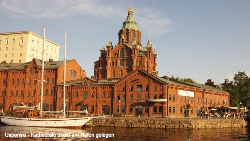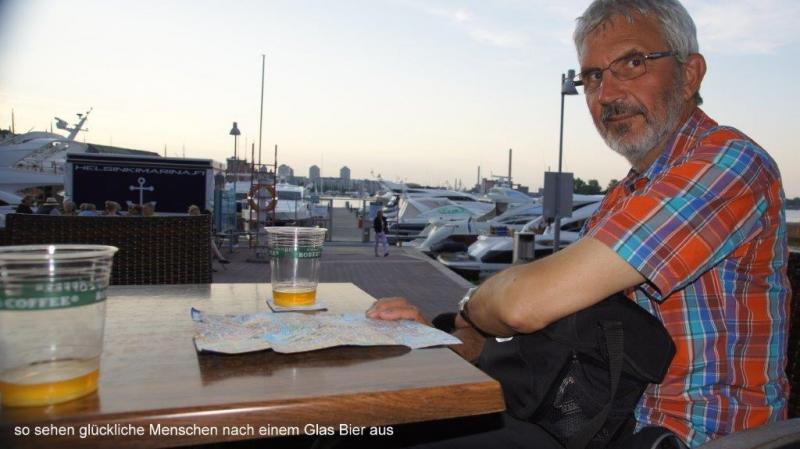 Eine feste Herberge verführt immer auch viele Sachen auszupacken, zu sortieren, umzupacken, vermisste Sachen wiederzufinden! Umso schlimmer ist es dann, wenn es weiter geht. Alles wieder sorgfältig (dafür fehlt dann die Zeit) einpacken. Heute Morgen sind wir aber super pünktlich, denn wir müssen um 9:30 Uhr im Hafen zum Einchecken sein. Das war ja ein „Jedööns“ gestern die Fähre zu buchen. 4-5 mal habe ich versucht, die Tickets online zu erstehen und immer wenn ich mich zum Bezahlstatus vorgearbeitet hatte, kam ein Sicherheitshinweis, dass es auf diesem Wege nicht funktioniert. Ich hoffe, ihr könnt alle meine abgrundtiefe Verfassung nachvollziehen, weil es nicht klappte, aber viel schlimmer war ja, dass meine Radelpartner schon seit einiger Zeit mit Ursel und Dietmar aus Hilden bei einem köstlichen Abendessen und Bier saßen und ich nicht zu „Potte“ kam. Zurück zu diesem Morgen, als wir zum Frühstück in der Küche sitzen (wir haben incl. Frühstück, ab 8:00 Uhr gebucht), ist noch gar niemand da. Aber den Kaffee setzen wir schon mal selber auf und wir haben ja auch noch Brot und Belag aus eigenem Vorrat. Es gibt eh nur Kaffee, Brot, Butter und wirklich außergewöhnlich leckere Marmelade. So um 8:30 Uhr gibt es dann frisches Brot des Hauses, nachdem wir fast schon mit dem Frühstück abgeschlossen haben. Wir haben uns hier dennoch wohl gefühlt und die zentrale Lage hat uns viele und intensive Eindrücke von Tallinn beschert. Nun das Gepäck die steile Treppe runter. Ich weiß nicht wie oft Heiner sich hier nützlich gemacht hat und die einzelnen Packstücke nach unten getragen hat, während der Rest der Mannschaft noch die letzten Dinge zusammen geklaubt hat. Der Versuch auf dem Weg zum Hafen noch das Postamt zu finden, um das defekte Objektiv zurück nach Hause zu schicken, schlägt leider fehl, da wir das Postamt am Busbahnhof nicht finden, wo wir es nach Stadtplan hätten eigentlich finden müssen. Nun geht es zum Terminal D, fast wie an einem Flughafen, nun aber auch mit Fußgänger- und Fahrrad-Zuwegung (vgl. Flughafen Kaliningrad). Schnell haben wir unsere Fährtickets, warten aber vergeblich, dass um 10:00 Uhr der Getränkeladen aufmacht, wo wir unseren Flüssigkeitsbedarf noch einmal auffüllen wollen. Aber als um 10:10U hr ein quasi letzter Aufruf erschallt, dass die Passagiere der „Starline“ sich nun bereitmachen sollten, brechen wir die Warterei ab, schwingen uns auf unsere Räder und sortieren uns in die Spur der einzulassenden Fahrzeuge. Liebe Mütter wir möchten euch nicht in Sorgen versetzen, wir haben zur Flüssigkeitsaufnahme dann doch an Bord der Fähre noch etwas erstehen können, so zu etwa 20% des Preises, den wir in Finnland bezahlen müssten. Seid ohne Sorgen, wir werden schneller abstinent, als uns lieb ist. Beim Einlaufen in den Hafen von Helsinki sehen wir eine Vielzahl von kleinen Inselchen, zum Teil mit einer kleinen Blockhütte drauf. Vom Hafen aus finden wir recht schnell die gebuchte Jugendherberge. Leider sind wir etwas zu früh und müssen noch bis 15:00 Uhr warten, bis wir das Zimmer beziehen können. Mit ca. 100 € für 2 Tage ist dies die teuerste Unterkunft unserer bisherigen Reise, aber mit kompl. Küche, die wir dann aber auch ausgiebig nutzen, indem wir mehrfach uns selber bekochen. Wir sind ja was Preise angeht in Polen, Kaliningrad und den baltischen Ländern wirklich verwöhnt worden, auch wenn die Preise ostwärts angezogen sind. Schon in Tallinn gab es preisliche Überraschungen, aber was wir jetzt in Helsinki erfahren, ist ein Preisschock. Nach dem Beziehen des Zimmers wird erst mal wieder die Möglichkeit zum Waschen mittels Waschmaschine genutzt. Um keine unnötigen Erwartungen aufkommen zu lassen, das Ausräumen der Waschmaschine fand diesmal nur in Anwesenheit eines männlich Wartenden statt, der auf seine Wäsche wartete (s.a. Bericht Riga). Noch am Nachmittag machen wir uns auf, einen ersten Eindruck von Helsinki zu gewinnen. Die Altstadt von Helsinki ist überschaubar (Einwohner Helsinki insgesamt rd. 600.000 Einwohner). Geprägt wird sie durch Massen an jungen Leuten, Businesserscheinungen (McK-mäßig) und für mich auffallend vielen Farbigen. Helsinki ist auch eine Fahrradstadt mit wirklich gut ausgebautem Wegenetz und einer Fahrradautobahn, die 2-spurig ohne Autoverkehr als Ringstraße ausgebaut ist. Die Auto- und Fußgängerquerungen sind zumeist als Brücken über die Fahrradstraße geführt. Wir laufen einmal quer durch die Altstadt, nehmen die unterschiedlichsten Eindrücke dieser quirligen Stadt auf, die Gelassenheit der Menschen. Wir stellen fest, dass die Lokale und Restaurants zum Bersten besetzt sind und trotz der horrenden Preise Bier, Sekt und Wein für diese Menschen anscheinend begehrenswert sind, denn die Tische sind damit gefüllt. Wir tun uns dagegen schwer, aber Karl-Josef drängt in einem Hafen mit Luxusjachten in der Nähe der Uspenski-Kathedrale darauf, dass wir uns in einem Lokal niederlassen, wo wir dann aus einem Plastikbecher jeweils ein 0,5 l Bier zu 6 € haben. Da wir die Sehenswürdigkeiten am nächsten Tag noch einmal mit mehr Zeit besuchen, wird Karl- Josef im Folgebericht darauf eingehen. Obwohl es noch hell ist, kommen wir erst spät nach Hause und meine beiden Kumpels fallen erschöpft und äußerst lichtempfindlich sofort in tiefen Schlaf, während ich noch an den News schreibe.